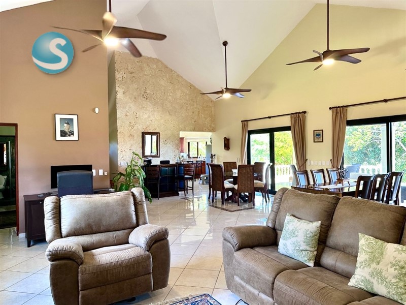The family home in Sosua features a bright and airy layout with generous living spaces designed for relaxed Caribbean living. Large windows and open areas allow natural light and refreshing breezes to flow throughout the home.