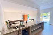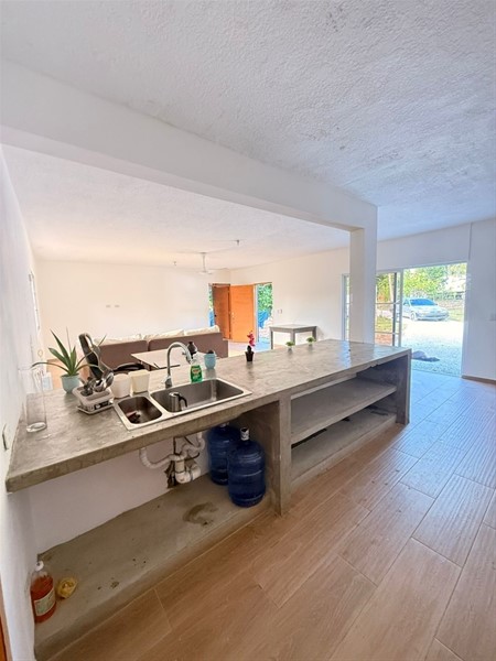 Cocina de cemento pulido con gran fregadero