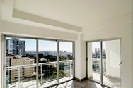 •Sala, balcón y baconcete tipo L con puertas en cristal y ventanales con vistas al mar y la ciudad