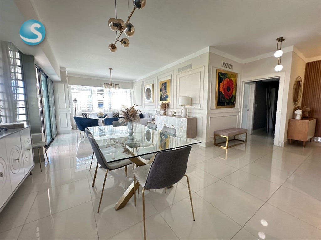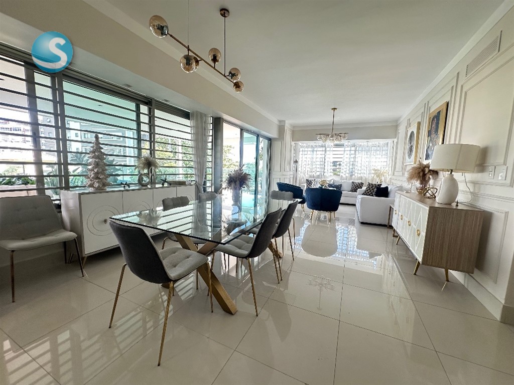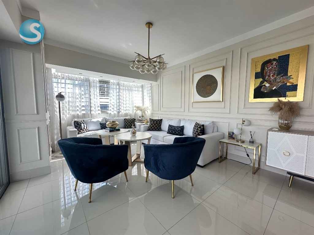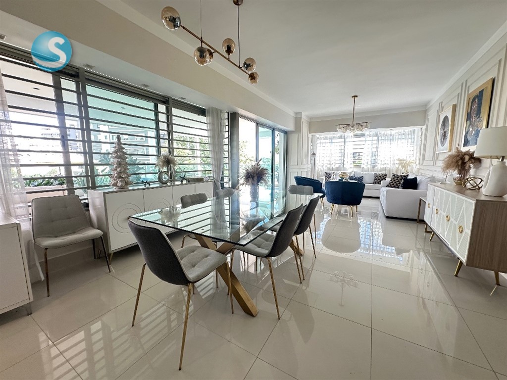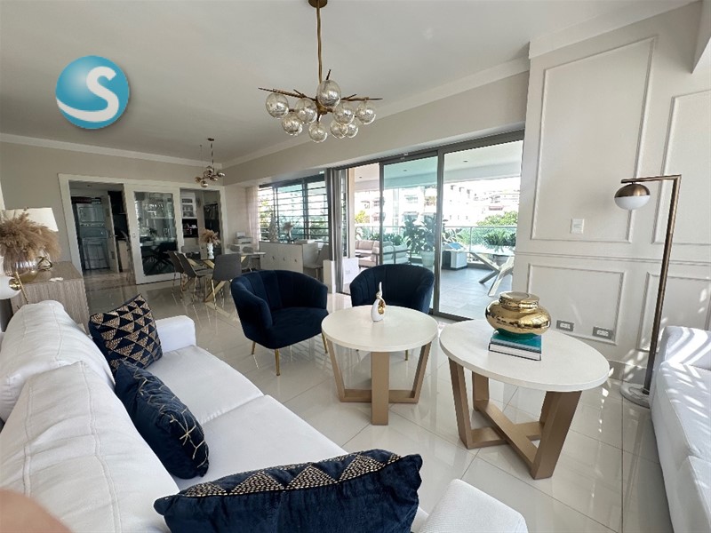 Apartamento finamente amueblado y decorado, con vista despejada y excelente iluminación natural, ubicado en torre moderna dentro del exclusivo sector Los Cacicazgos.