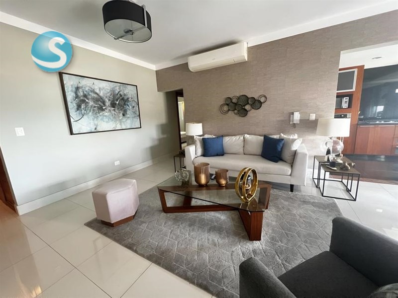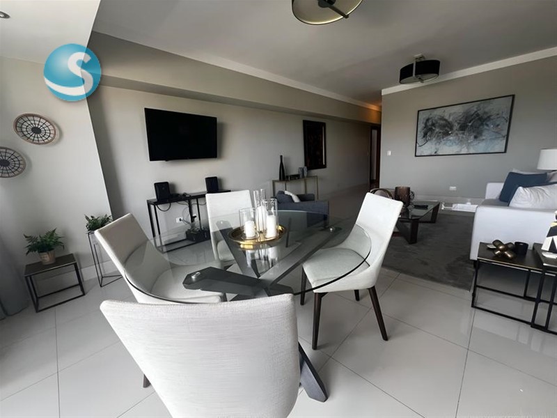 Descubre este moderno apartamento amueblado en alquiler, ubicado en el nivel 5 de una elegante torre en Los Cacicazgos, una de las zonas más exclusivas de la ciudad. Con una decoración minimalista y vistas al mar y a la ciudad, este apartamento te brinda el equilibrio perfecto entre confort y estilo en un entorno privilegiado.