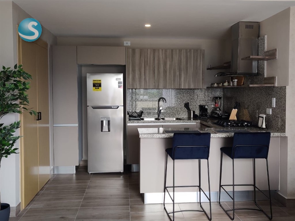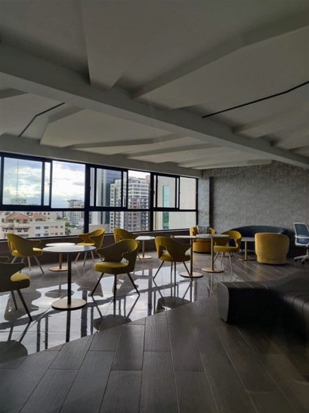 Esta apartamento esta ubicado en una novedosa torre de apartamentos de 1 y 2 habitaciones, que cuenta con ascensores, amplios parqueos y un nivel completo de área social en el último piso, donde están ubicadas facilidades como: restaurant, bar, piscina, jacuzzi, gimnasio, sauna y centro de negocios, gozando a la vez de hermosas vistas a la ciudad moderna.