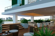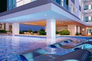 Piscina infinita con solárium en área común