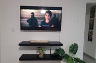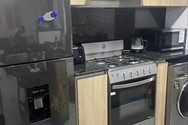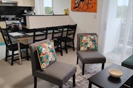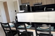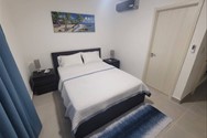 This is a 2 bedroom, 2 bathroom, Condo with a queen bed in each room. The living room has a pull out sofa bed (Full size - sleeps 2). The kitchen is equipped with a stove, microwave, toaster, electric kettle, coffee pot, pots & pans, plates, cutlery and drink ware. There's also a washer & dryer combo as well as an electric water heater. AC units and ceiling fans are in each room.