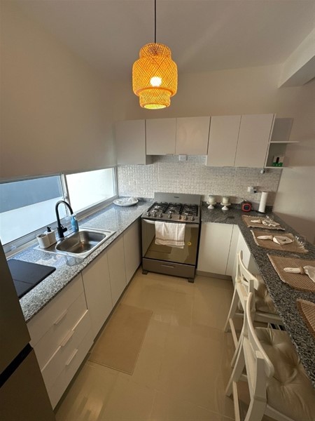 Este hermoso apartamento en segundo nivel cuenta con *73 m², 2 habitaciones, 2 baños completos,* área de lavado, balcón privado y una cocina moderna con desayunador tipo isla. Un espacio muy cómodo, con excelente distribución, *full amueblado,* listo para ocupar, con *título en mano y totalmente saldado.*