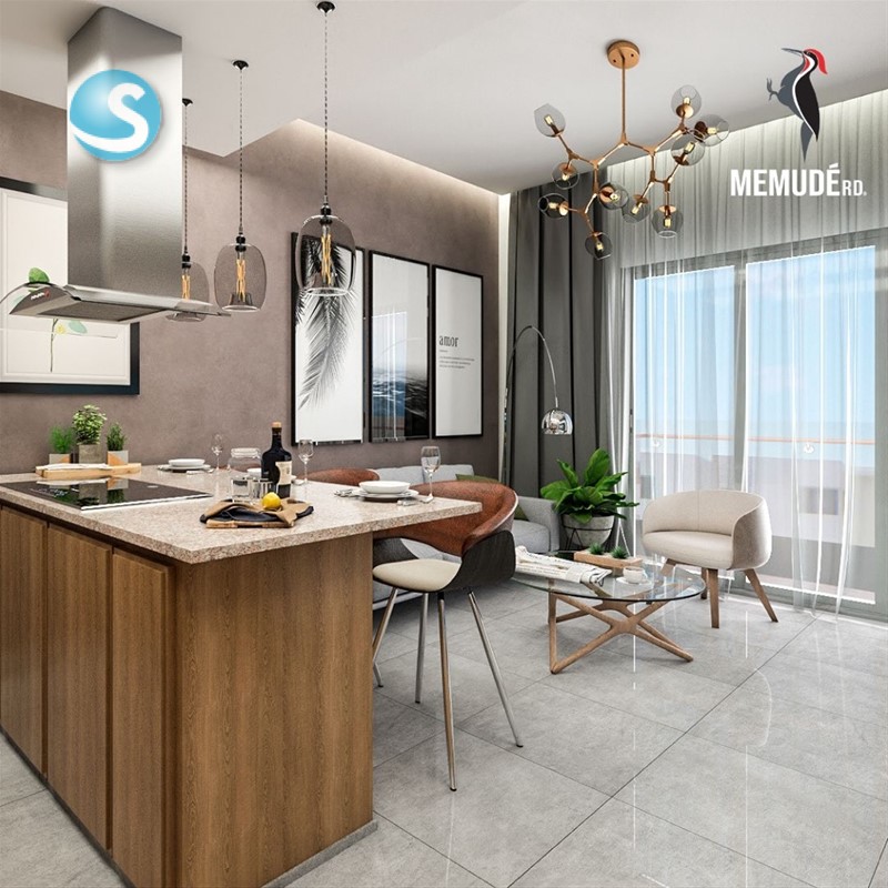 Este proyecto contará con 195 unidades distribuidas en cinco edificios de cinco niveles, cada bloque con ascensores privados. Apartamentos de una y dos habitaciones desde 50 mts2 hasta 70 mts2.