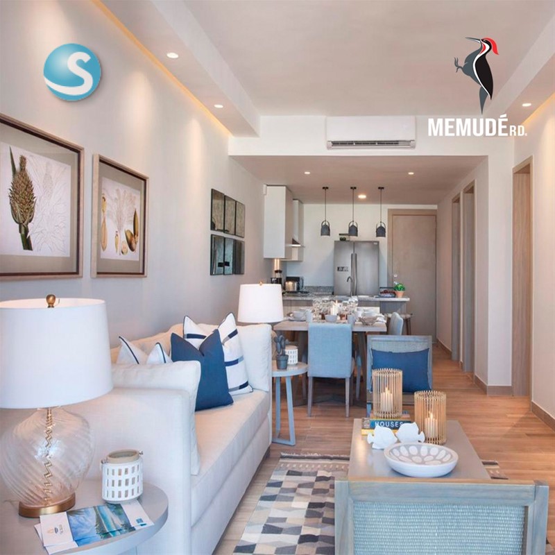 Los amplios apartamentos están distribuidos armoniosamente en su interior. Las terrazas y balcones llenan sus espacios de luz y comfort. El complejo cuenta con un condo hotel, el cual incluye restaurantes, spa, gimnasio y tiendas