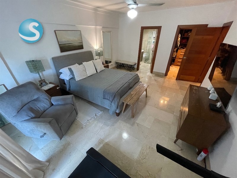 ??*BELLA VISTA SUR* ?? *DESCRIPCION GENERAL:* Elegante, Majestuoso y Cómodo apartamento ubicado en el corazón de Bella Vista Sur. De finísima terminación y espacios muy difíciles de encontrar. La habitación principal es de ensueño, sin dejar atrás las habitaciones Secundarias. Todas las áreas en su mayoría cuentan con un excelente tamaño y distribución, haciendo que cada ambiente en este apartamento sea armonioso y elegante. ?? *DESCRIPCION DEL APARTAMENTO:* ??3er Nivel (2 x Piso) ??245 Metros ??3 Amplias Habitaciones con su baño y Walk In Closet Revestidos en Cedro (Hab. Principal con Balcón) ??3.5 Baños ??1/2 Baño de Visitas ??Recibidor a la salida del Ascensor ??Estar Recibidor ??Amplia Sala ??Comedor ??Estudio ??Amplio Balcón ??Cocina Cerrada ??Área de Lavado ??Cuarto de Servicio con Baño ??2 Parqueos Techados Paralelos ?? *TERMINACIONES:* ??Pisos en Mármol ??Puertas en Madera Roble y Caoba ?? En la Cocina Gabinetes en Caoba y el Tope en Granito Natural ??Techos con Fascias en Sheetrock Con Luces empotradas ?? *DESCRIPCION DE LA TORRE:* ??Lobby ??2 Ascensores (Con Opción a Bloqueo) ??Planta Eléctrica Full ??Cámaras de Seguridad ??Conserjería y Vigilancia 24/7 ??Circuito Cerrado ??Portón Eléctrico ?? Terraza Común con Vista al Mar. ??Salón de Eventos ??Área de BBQ ??Escalera de Emergencia ??Gas común y Agua incluido en el mantenimiento ??Año Construcción 2014 ??NO Airbnb ?? *PRECIO DE VENTA:* *US$ 375,000.00* ??*Mantenimiento:* *RD$ 13,000.00