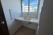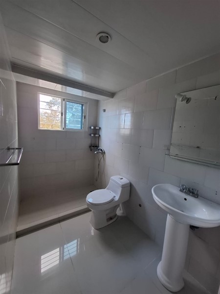Cuarto de servicio con su baño, área de lavado que alberga lavadoras grandes.