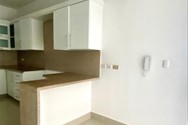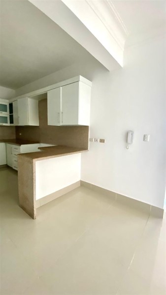 El área social está compuesta por sala y comedor independientes, conectados a un balcón que aporta iluminación y amplitud visual. La cocina mantiene un diseño cerrado, permitiendo una operación más organizada, acompañada de área de servicio completa con su baño.