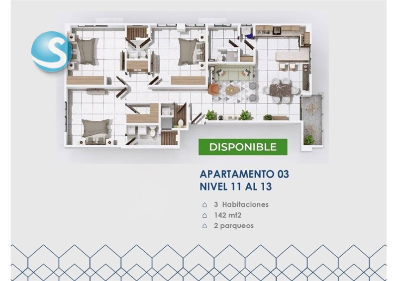 • Apartamentos de 3 habitaciones 127M2, 137M2, 142M2