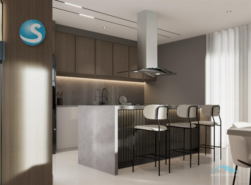 - GABINETES DE COCINA MODULAR CON TOPE Y BACKPLASH EN GRANITO NATURAL