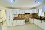Cocina moderna de lujo con gabinetes en caoba blanca y encimeras en piedra