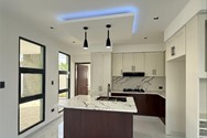 - Cocina en madera preciosa con tope de cuarzo