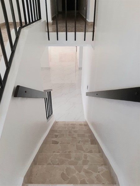 Primer nivel: Marquesina doble, sala, sala-estar, dos comedores, cocina con desayunador, terraza techada, medio baño, cuarto de servicio con baño, área de lavado, locker, patio, cisterna con su bomba de agua, verja perimetral con alambrado de púas en todos los bordes superiores, inversor de dos kilos con cuatro baterías con sus bases, calentador de gas, tinaco, escrines en todas las ventanas, base para manguera.