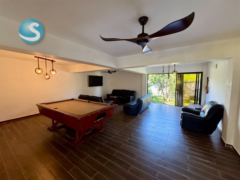La villa cuenta con habitaciones amplias, todas climatizadas y equipadas con camas grandes. Incluye sala de billar, áreas sociales interiores y exteriores, terraza con BBQ, un comedor espacioso y una piscina privada con espectaculares vistas al océano. Los jardines tropicales que rodean la propiedad crean un ambiente íntimo y relajado, ideal para compartir en familia o con amigos.