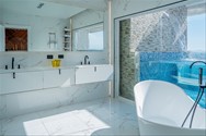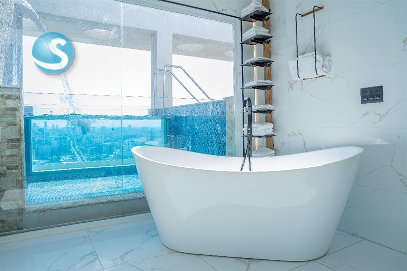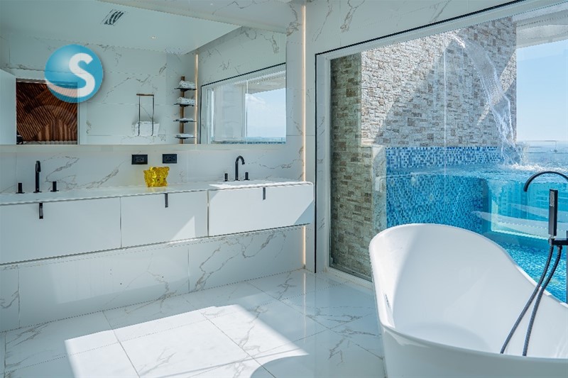 - Habitación principal con piscina, amplio baño revestido en mármol, ducha con doble techo panorámico, amplio w/c