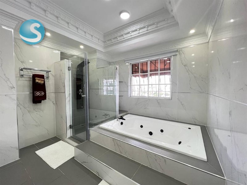 Baño con jacuzzi y ducha separados.