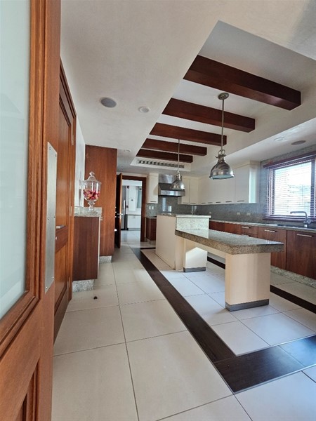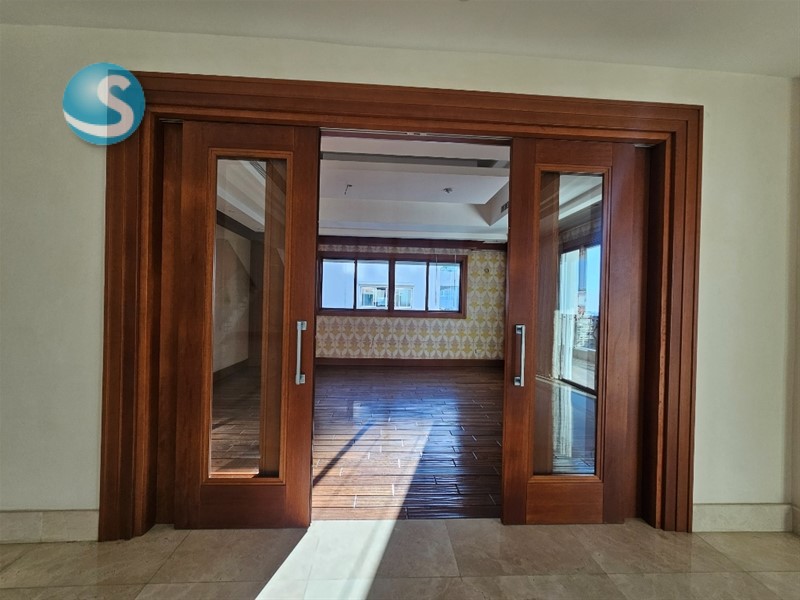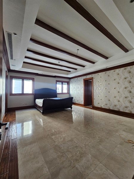 Un elegante hall de entrada da paso a tres habitaciones con baños y vestidores privados, family room, estudio, comedor formal, dos salas integradas, cocina fría y cocina caliente, área de lavado, cuarto y entrada de servicio independiente, además de un ascensor de carga.