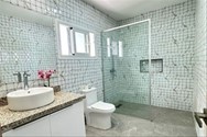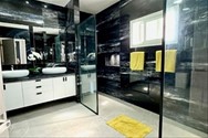 closet, baño con doble ducha y doble lavabo y balcon