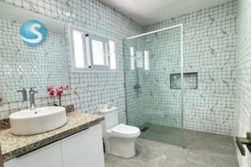 Recibidor, Salón, Cocina con Isla Central, Area de Lavado, Habitación de servicio con Baño, Habitación/oficina con baño, Terraza-Comedor, Baño de Visitas, Terrza, piscina (9x5m) y gacebo